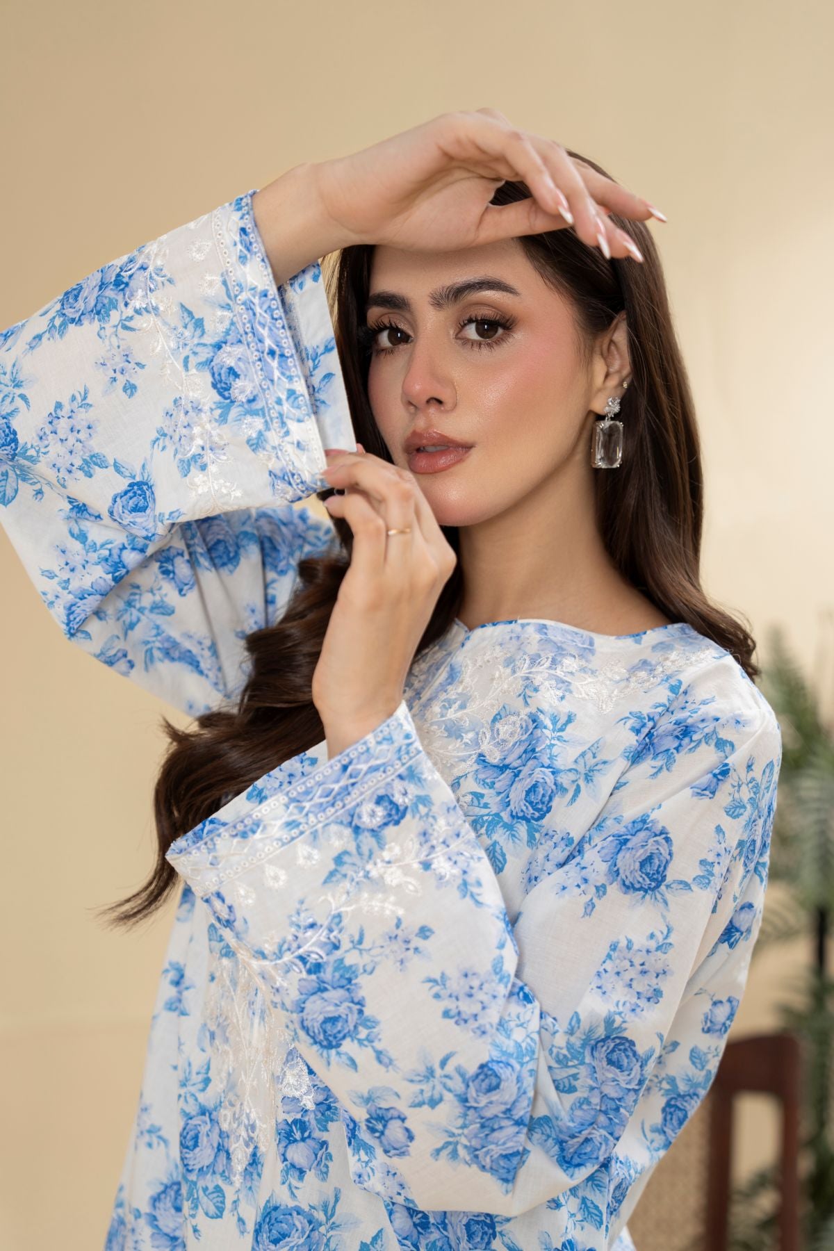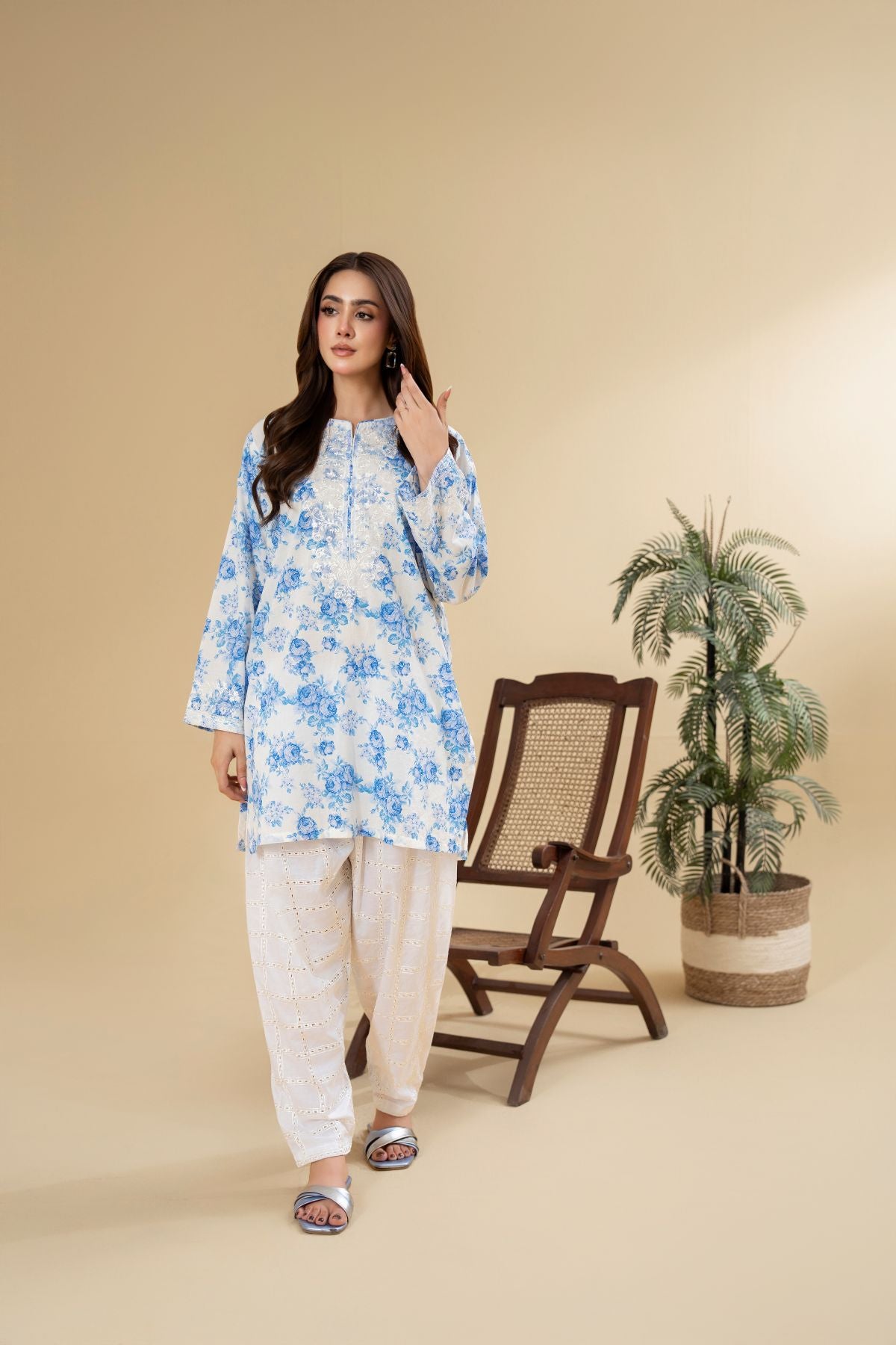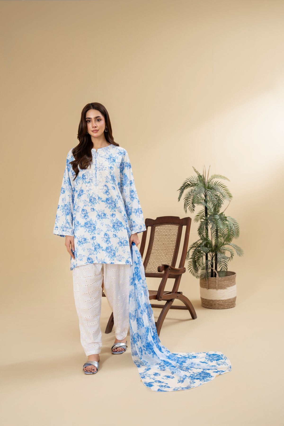 Embrace elegance this Ramadan and Eid with our exquisite 3-piece off-white lawn ensemble. Delicate embroideries adorn the soft fabric, complemented by a pastel pink organza dupatta. This stunning outfit is the perfect blend of sophistication and festive charm. Experience the comfort and style you deserve.