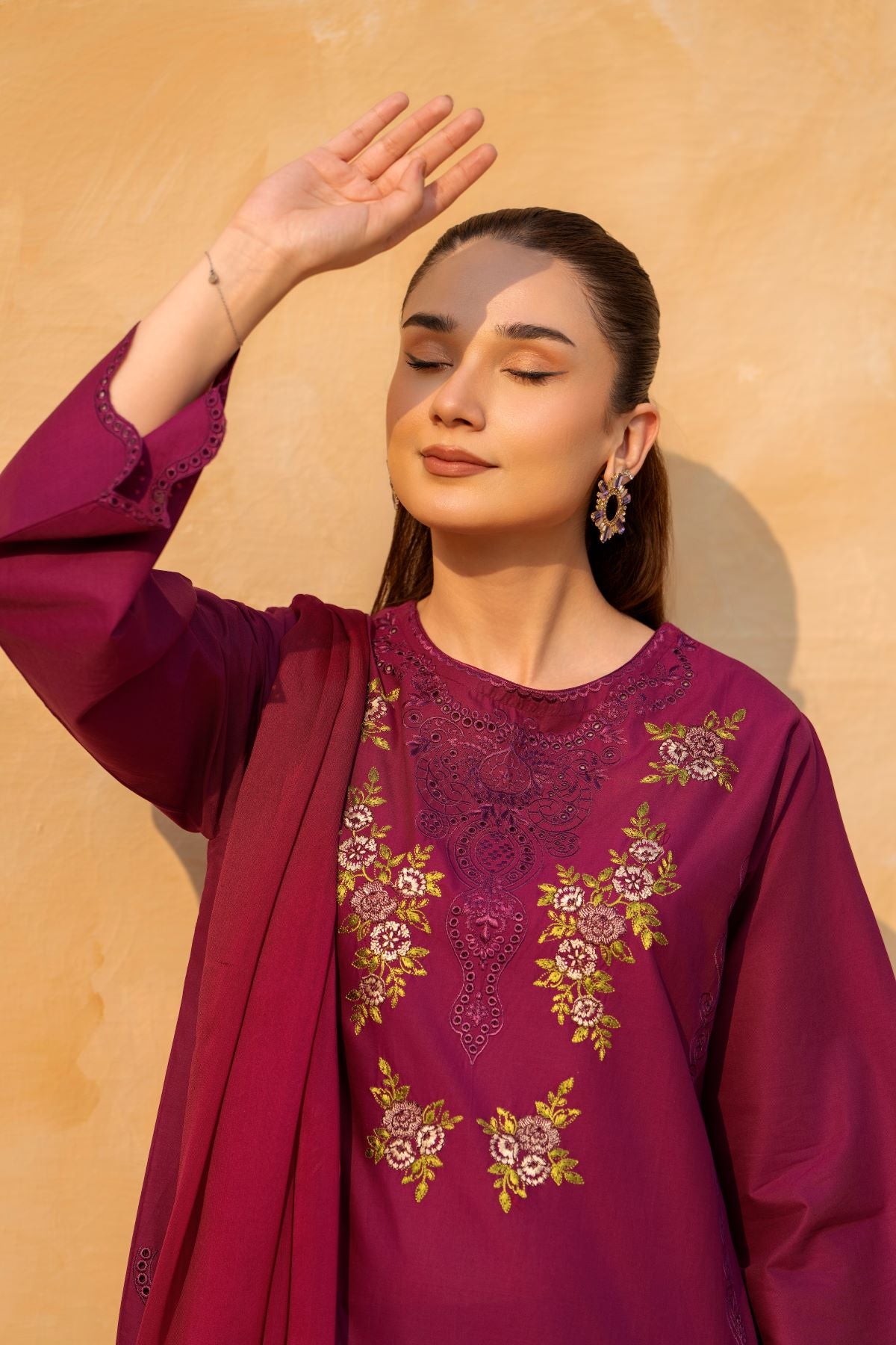 Indulge in festive charm with our Sweet Pea three-piece suit. Crafted from premium cotton lawn, this ensemble offers both comfort and style, making it perfect for celebrating special occasions like Eid and dinners.